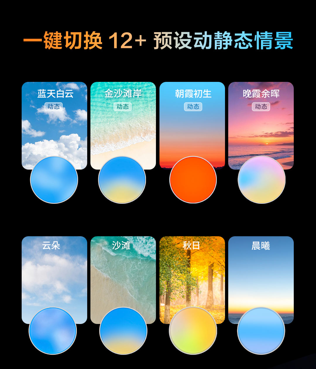 为营造沉浸式空间情绪体验,Aqara从自然万象汲取灵感,内置“阿尔卑斯晴空”“加州黄金海岸”“优胜美地破晓” 等12种以上预设动静态情景,每种光都对应不同情绪——或清澈提神,或温暖放松,或温柔唤醒。独创的360°独立星环柔光系统,从任何角度均能看见优雅的天际光,既能营造整体氛围,也可单独作为夜间微光,起夜也不破坏睡意,细腻关照用户全时段需求。
