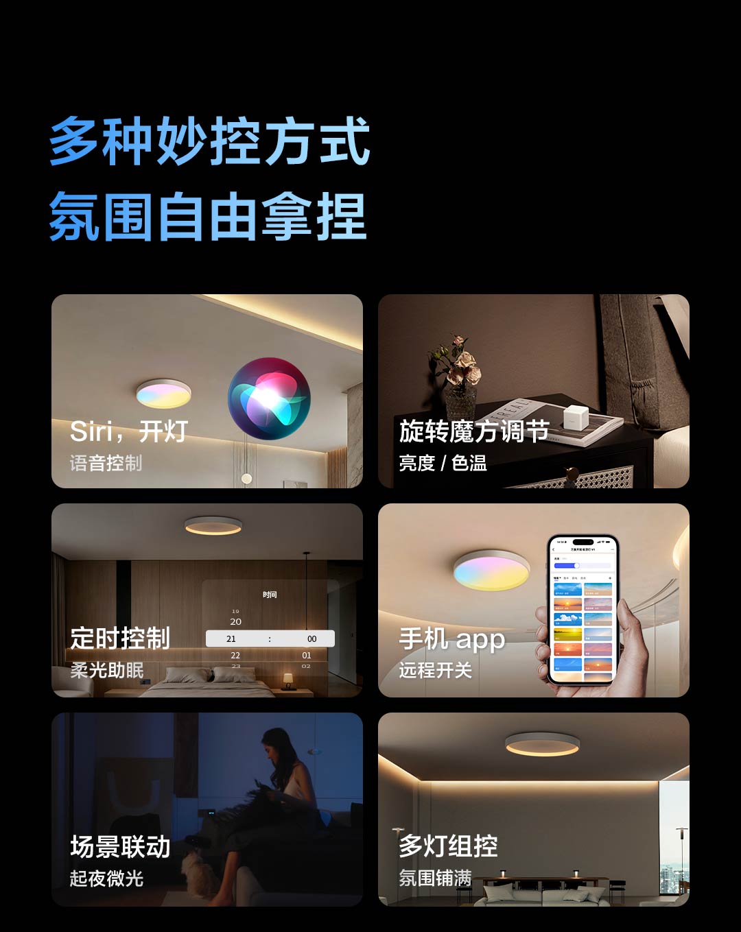 在智慧体验方面,新品深度融合Apple生态,支持Apple Home,并独享Apple自适应照明功能,让室内光线随自然节律自动调节。控制方式同样多样除了支持手机App、场景联动、定时控制外,更可融入Apple全设备生态,实现iPhone快捷指令、Siri、Apple Watch手势控制等创新交互,让光随心而动,轻松带来美妙的苹果全屋智能妙控体验。